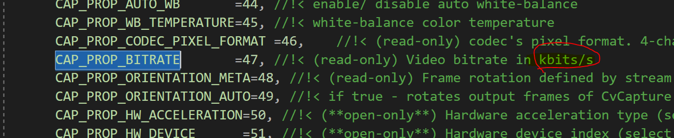 CAP_PROP_BITRATE 에서 나온 bitrate의 단위는 kbits/s였다.