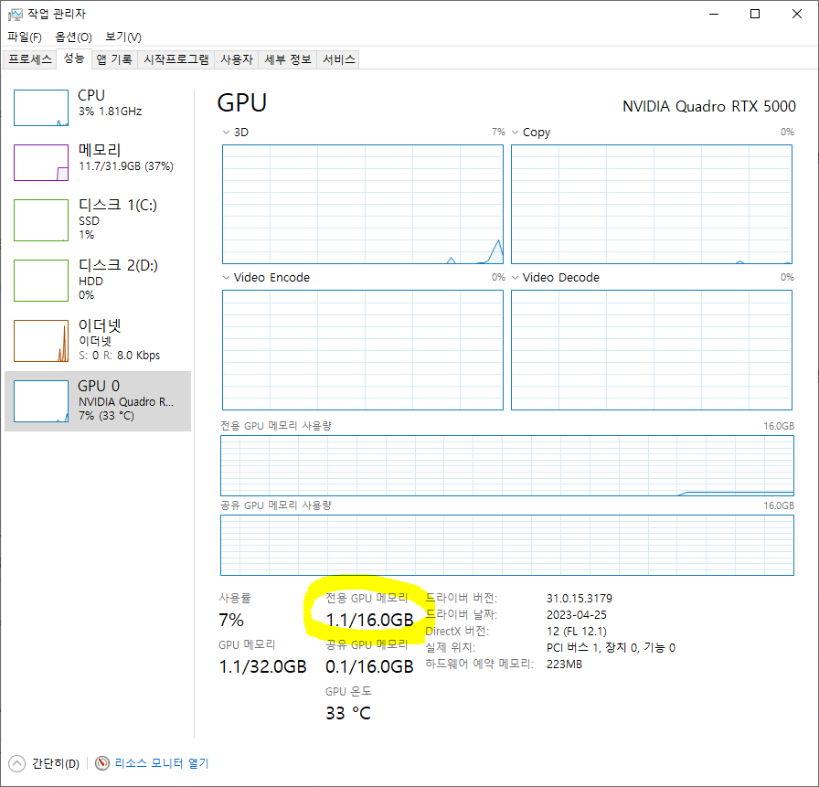 내가 사용중인 GPU 메모리는 용량이 커서 문제가 없었으나...