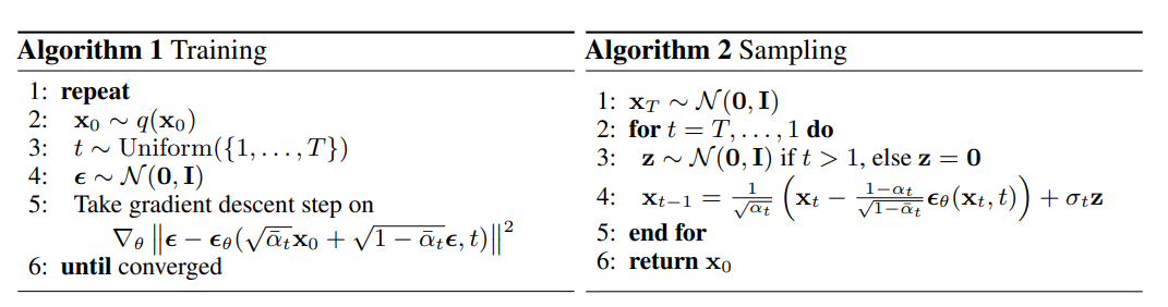 Noise를 더해나가면서 Noise(ϵ)가 얼마나 추가되었는지를 학습한다.학습 시 특정 step에서 gaussian noise가