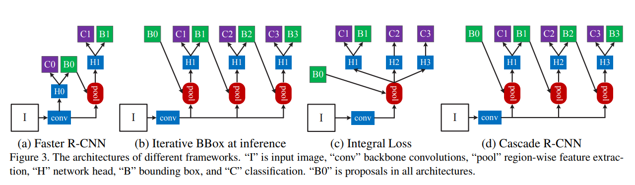 논문 figure를 보면 Faster R-CNN에서 어떤 식으로 Cascade R-CNN의 구조로 발전시켰는지 알기 쉽다.