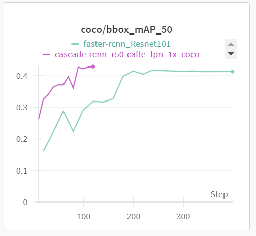 위 논문의 표와 실험 결과를 비교해보면 같은 epoch에서 faster rcnn보다 cascade 성능이 높음을 알 수 있다.