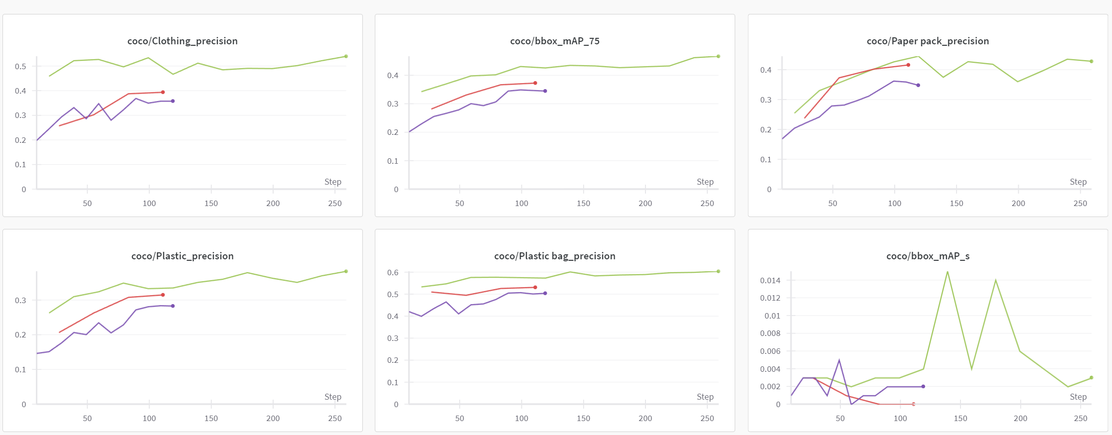 특히 주목할 점은 계속 문제가 되었던 small object와 general trash에서 더 좋은 성능을 보인다는 점이다.