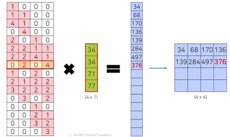 매트릭스 형태로 봐도 Transposed 된 형태로 계산이 진행된다.