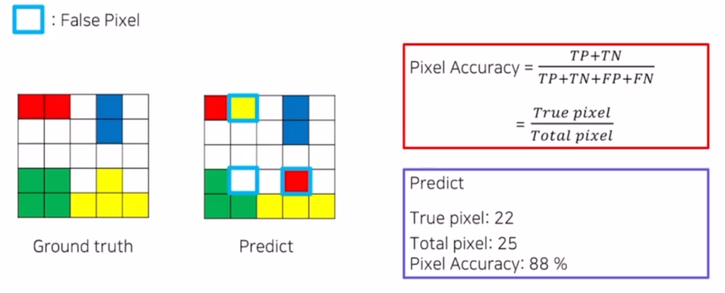 Pixel Accuracy = True pixel / Total pixel