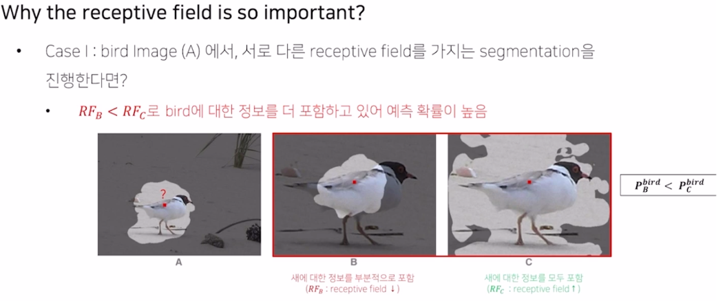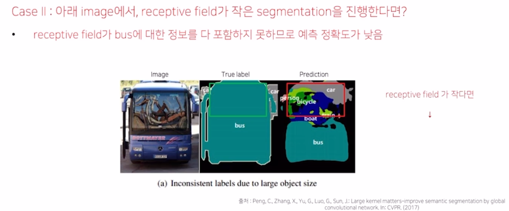 receptive field가 작다면 → 버스에 대한 정보를 부분적으로 포함 → segmentation정확도 하락