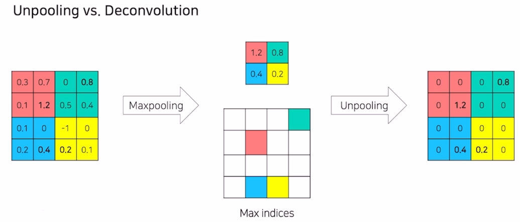 DeconvNet과 SegNet의 구조 차이 return_indices=True # 인덱스 위치 정보공통점
