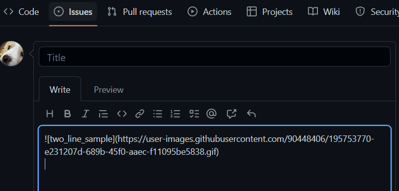 이미지나 영상(gif)을 첨부하려면 issue항목에서 파일을 드래그하면 소스가 나오는데 그것을 복사해주면 된다.