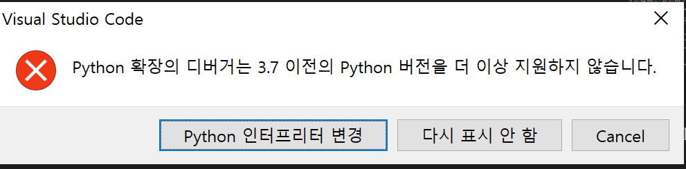 [VS Code + Python + PyQt5] Python 확장의 디버거는 3.7이전의 Python 버전을 더 이상 지원하지 않습니다. (파이썬 버전 변경 후 라이브러리 오류)Programming/PyQt 2022. 12. 14. 17:41